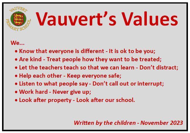 Our 'Vauvert's Values' are a key part of our school's ethos and now underpin our expectations in school.